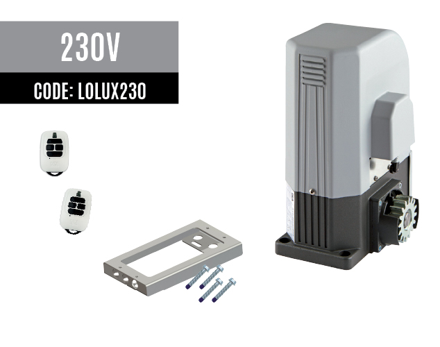 Designed for the automation of sliding gates. LoLUX is made up of a mechanical gear motor rotating the draft gear that, in association to a properly installed rack, converts the circular movement of the gear motor into straight-line movement, thus allowing the gate to move in its own slide.